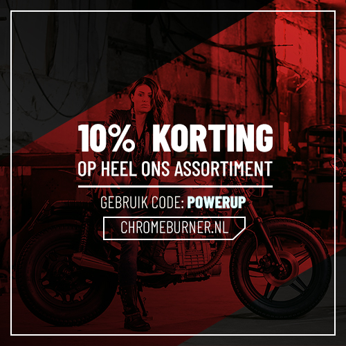 Alle spullen zijn te bestellen bij ChromeBurner in de fysieke winkel of lekker makkelijk online. ChromeBurner is ook trotse ambassadeur van Motormeiden! Â Gebruik de code POWERUP en krijg 10% korting!